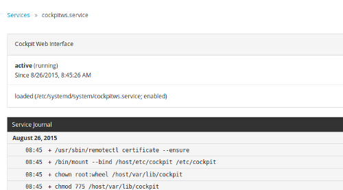 Upon booting up a new Fedora Atomic 22 VM using this cloud-init configuration, I see that the cockpitws service has started, and that docker is pulling down the cockpit image as expected. Once the container is running, you’ll be able to access the cockpit ui at port 9090 of your atomic host.